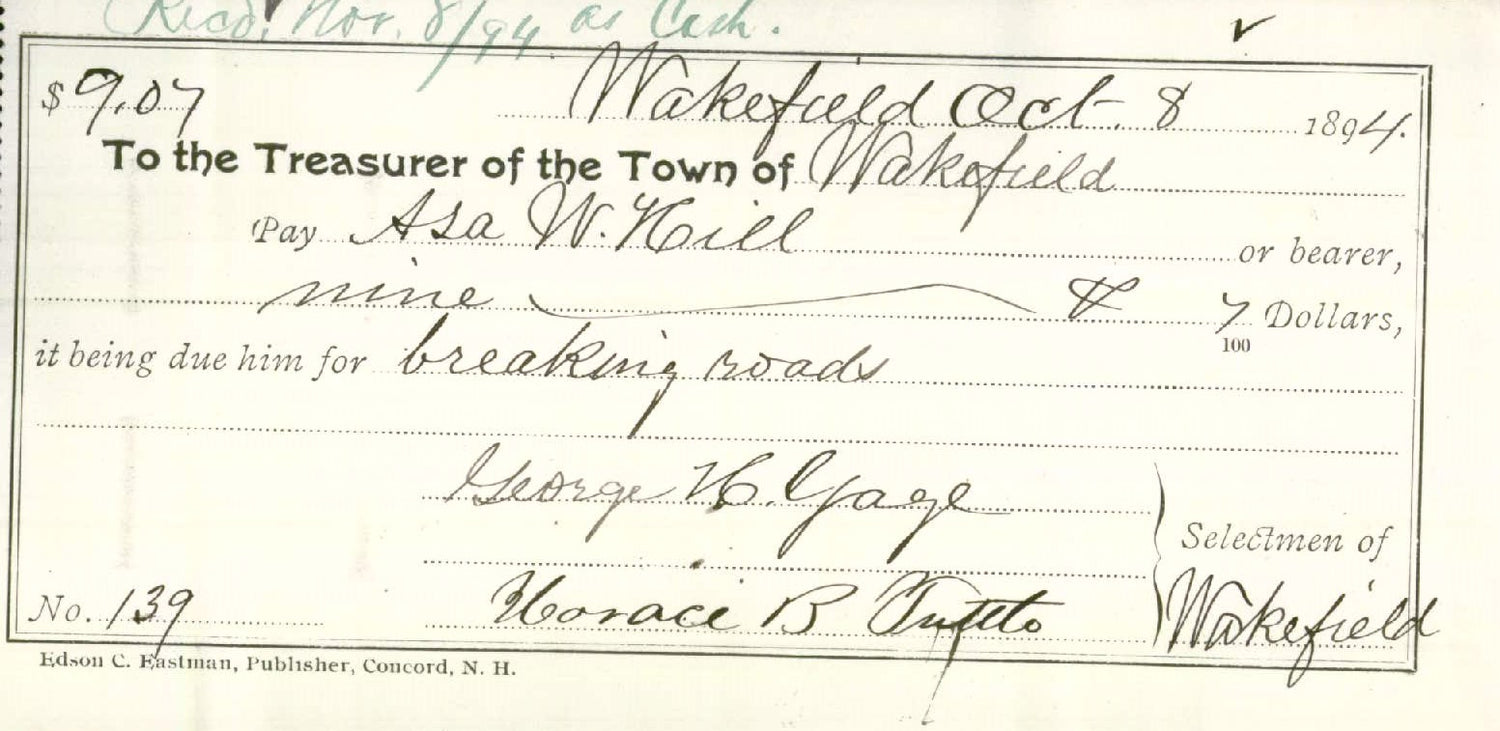 Wakefield, Massachusetts Payment Vouchers 1894-1897
