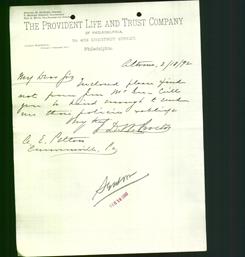 Samuel R. Shipley [President]; T. Wistar Brown [Vice President]; Asa S. Wing [Actuary]; Joseph Ashbrook [Manager]; A. E. Patton [Cashier]