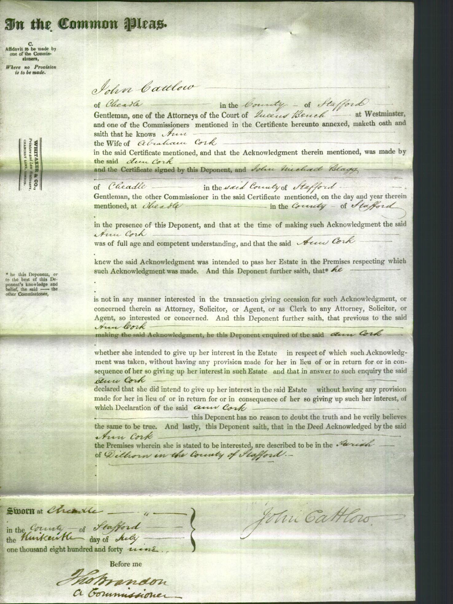 Court of common pleas document - Ann Cork wife of Abraham Cork