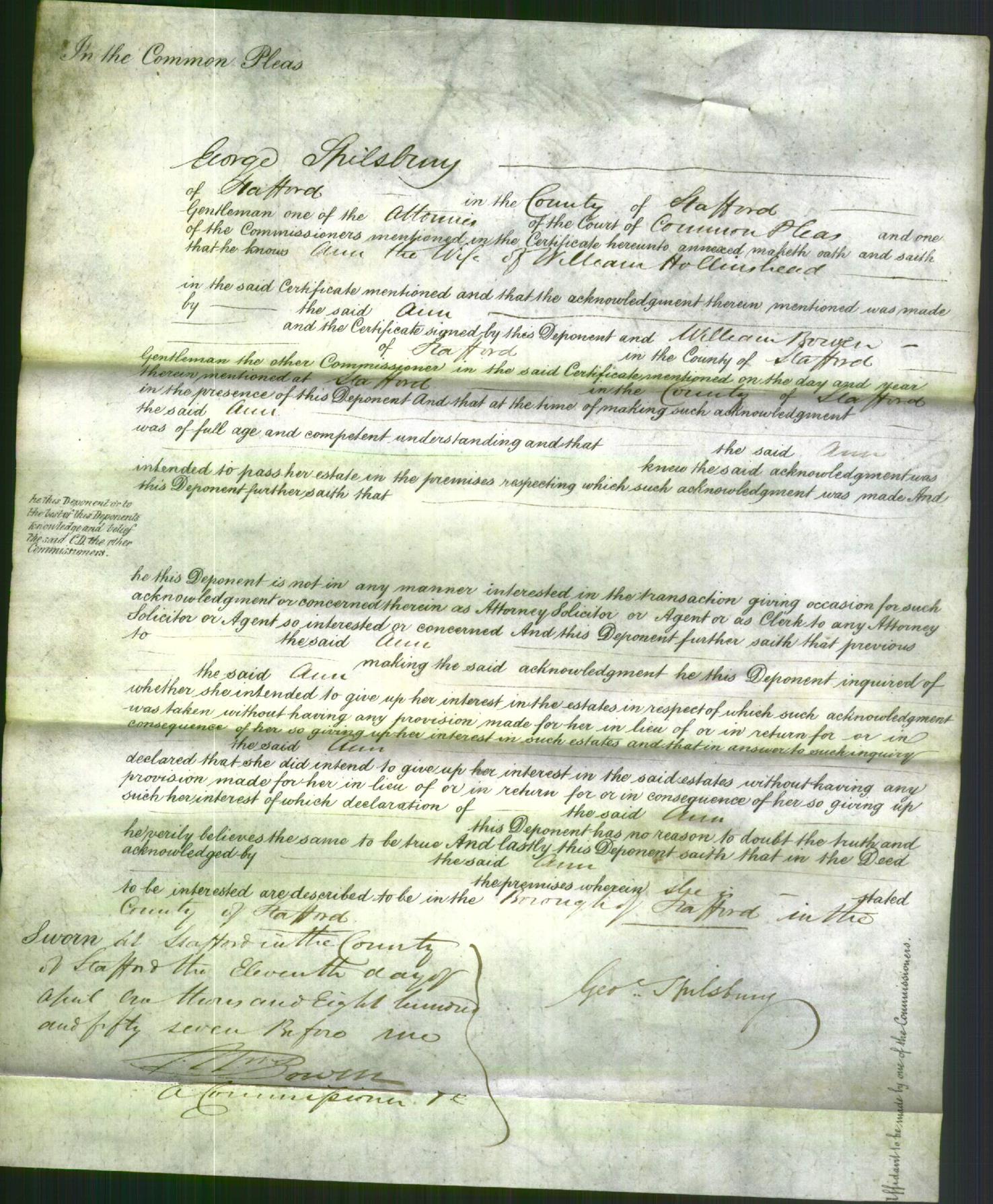 Court of common pleas document - Ann Hollinshead wife of William Hollinshead