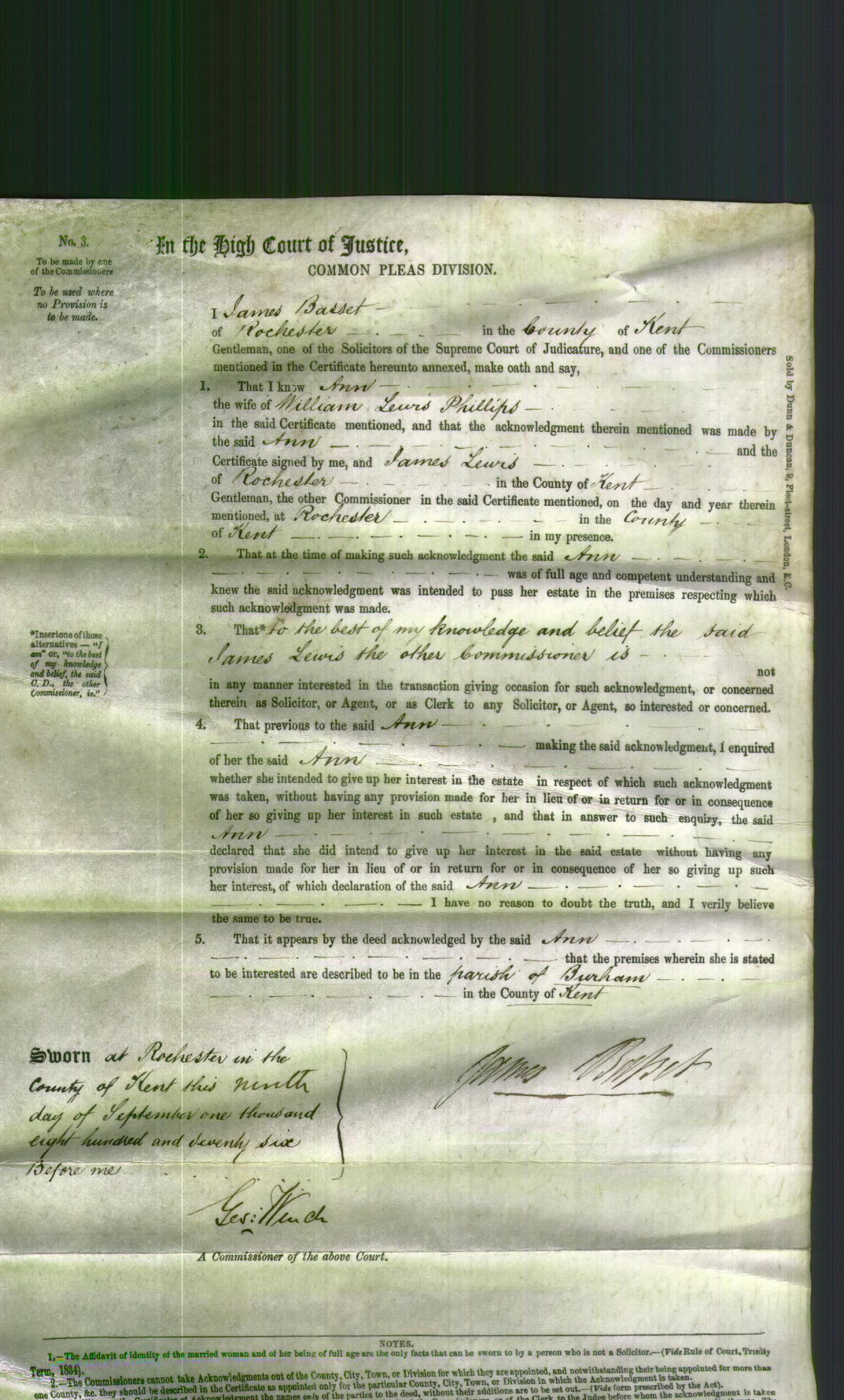 Court of common pleas document - Ann Phillips wife of William Lewis Phillips
