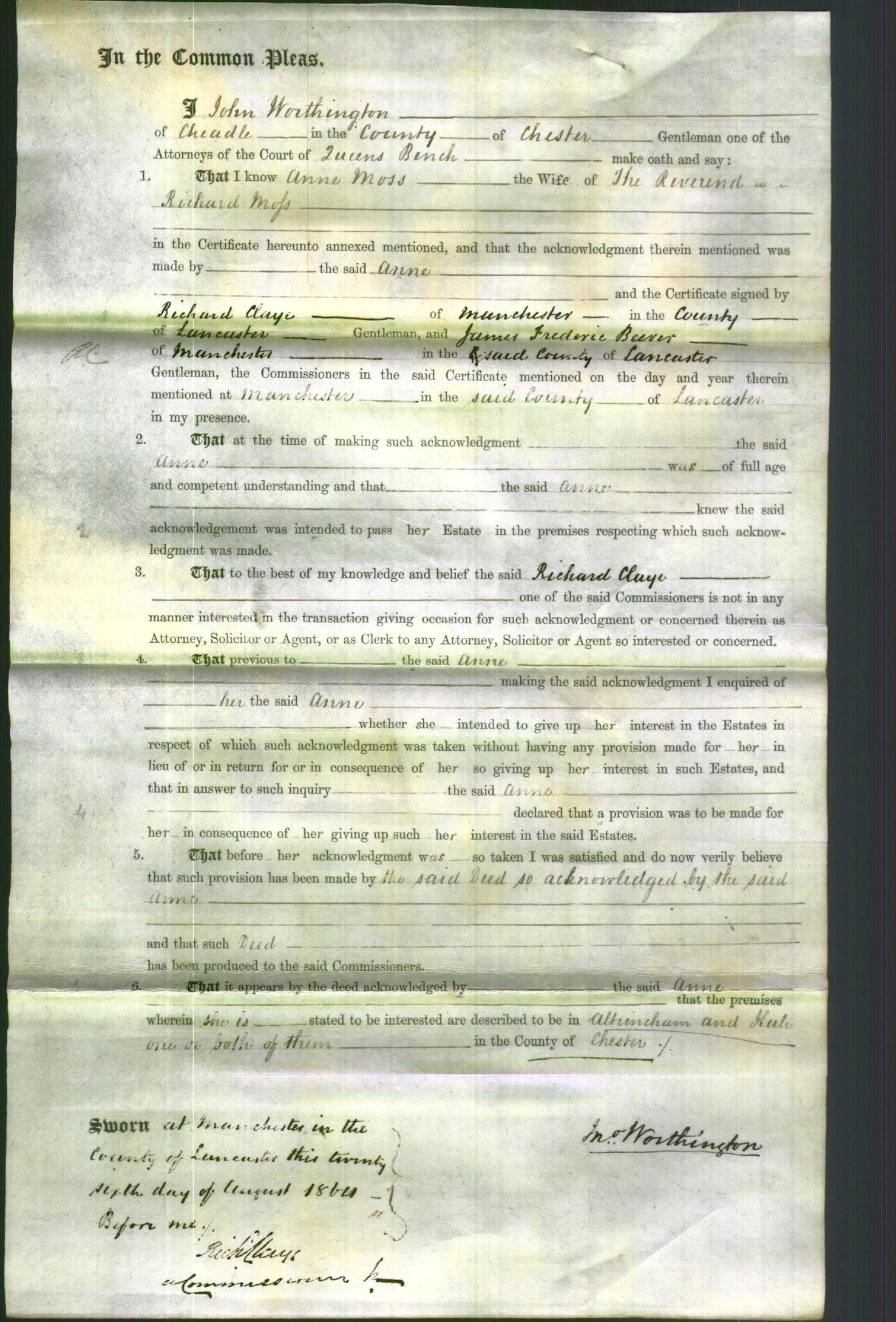 Court of common pleas document - Anne Moss wife of Rev. Richard Moss