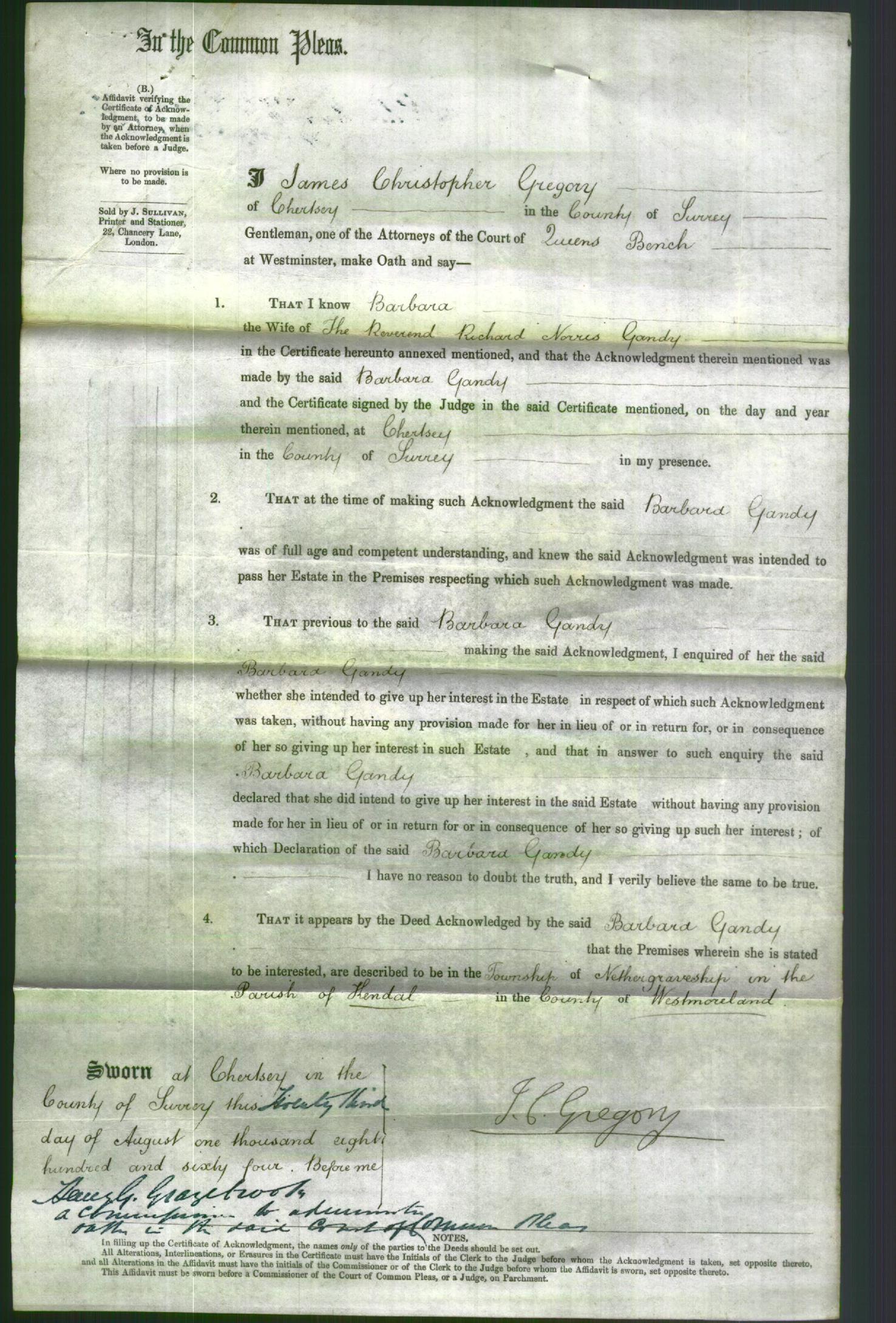 Court of common pleas document - Barbara Gandy wife of Rev. Richard Norris Gandy