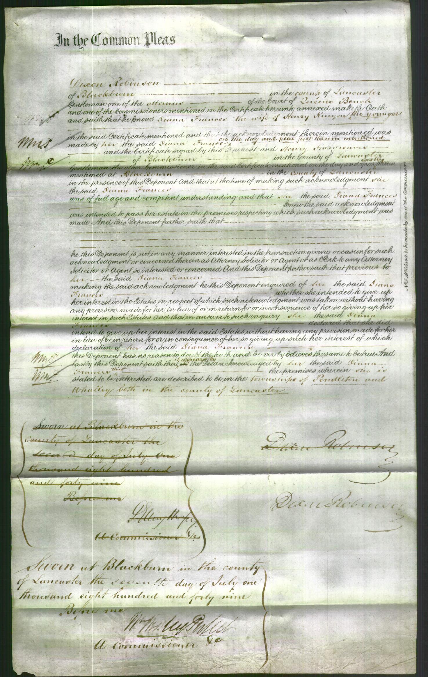 Witnessed by Dixon Robinson and Henry Hargreaves