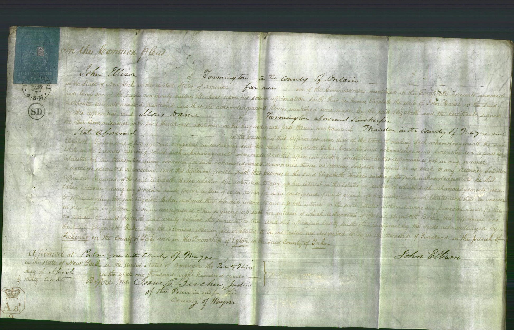 Court of common pleas document - Elizabeth Baker wife of John Baker