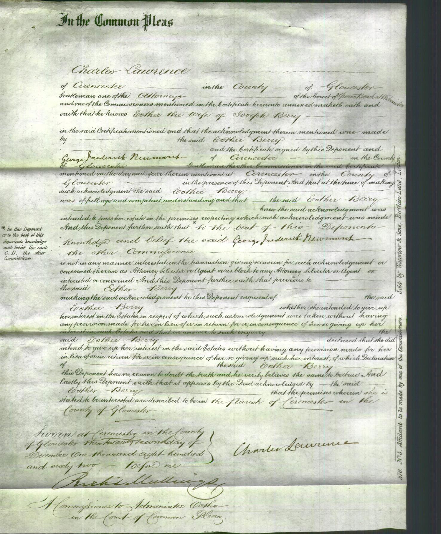Witnessed by Charles Lawrence and George Frederick Newmarch