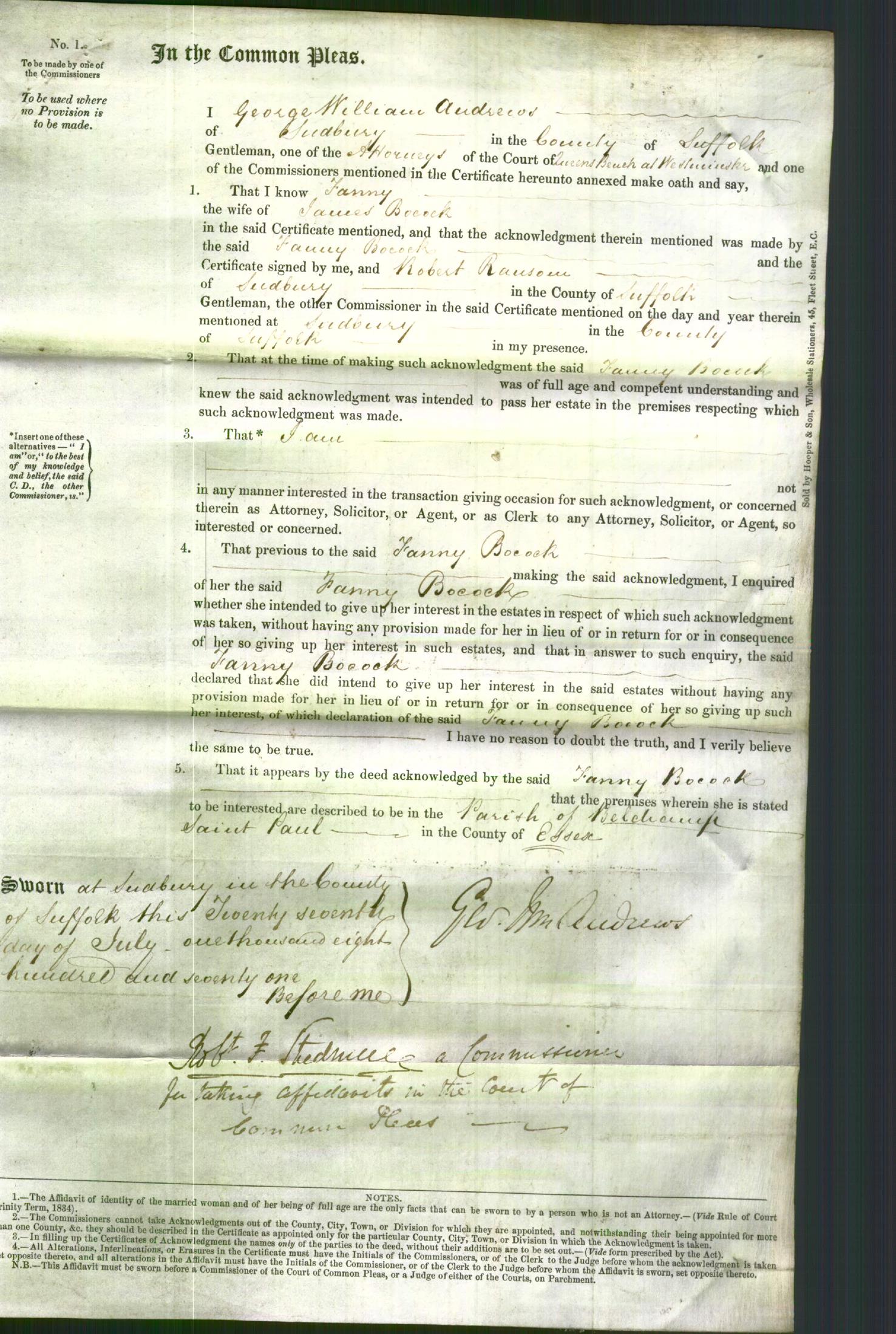 Court of common pleas document - Fanny Bocock wife of James Bocock