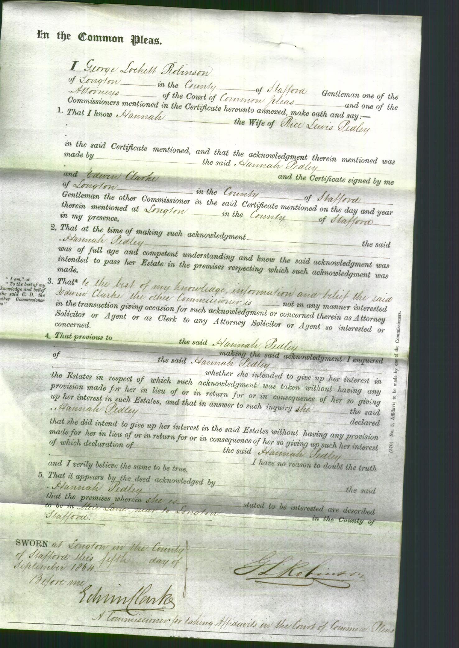 Witnessed by George Lockett Robinson and Edwin Clarke