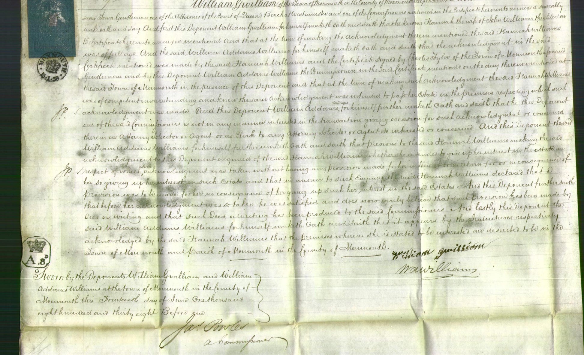 Witnessed by William Gwilliam, Charles Tyler and William Addams Williams