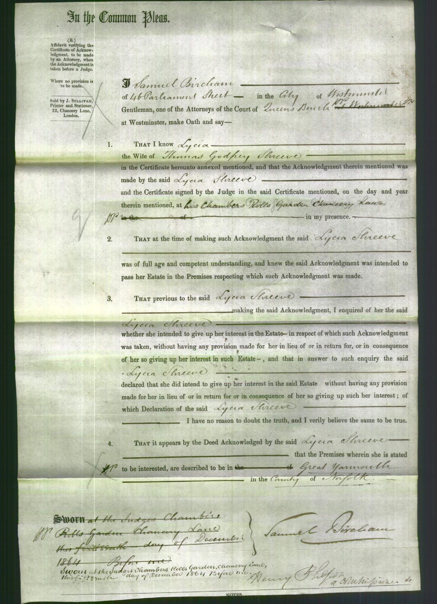 Witnessed by Sir Charles Crompton and Samuel Bircham