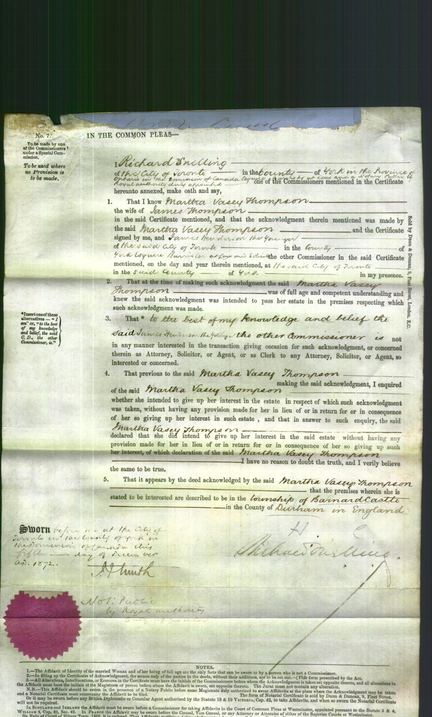 County of Toronto, Ontario, Canada Date 5-12-1872