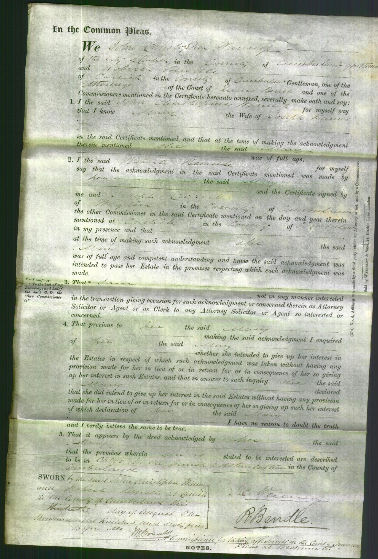 Court of common pleas document - Mary Barnes wife of Joseph Barnes
