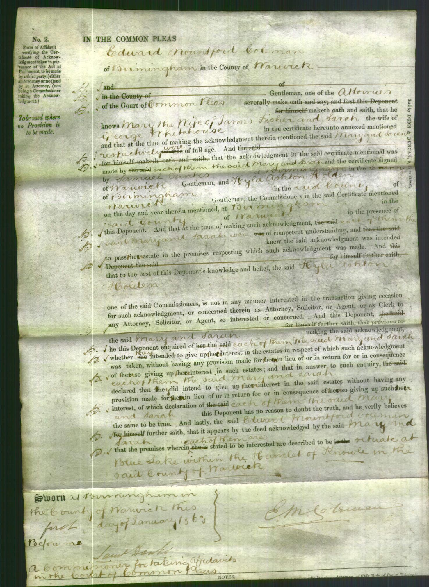 Witnessed by Edward Mountford Coleman, Samuel Danks and Hyla Ashton Holden