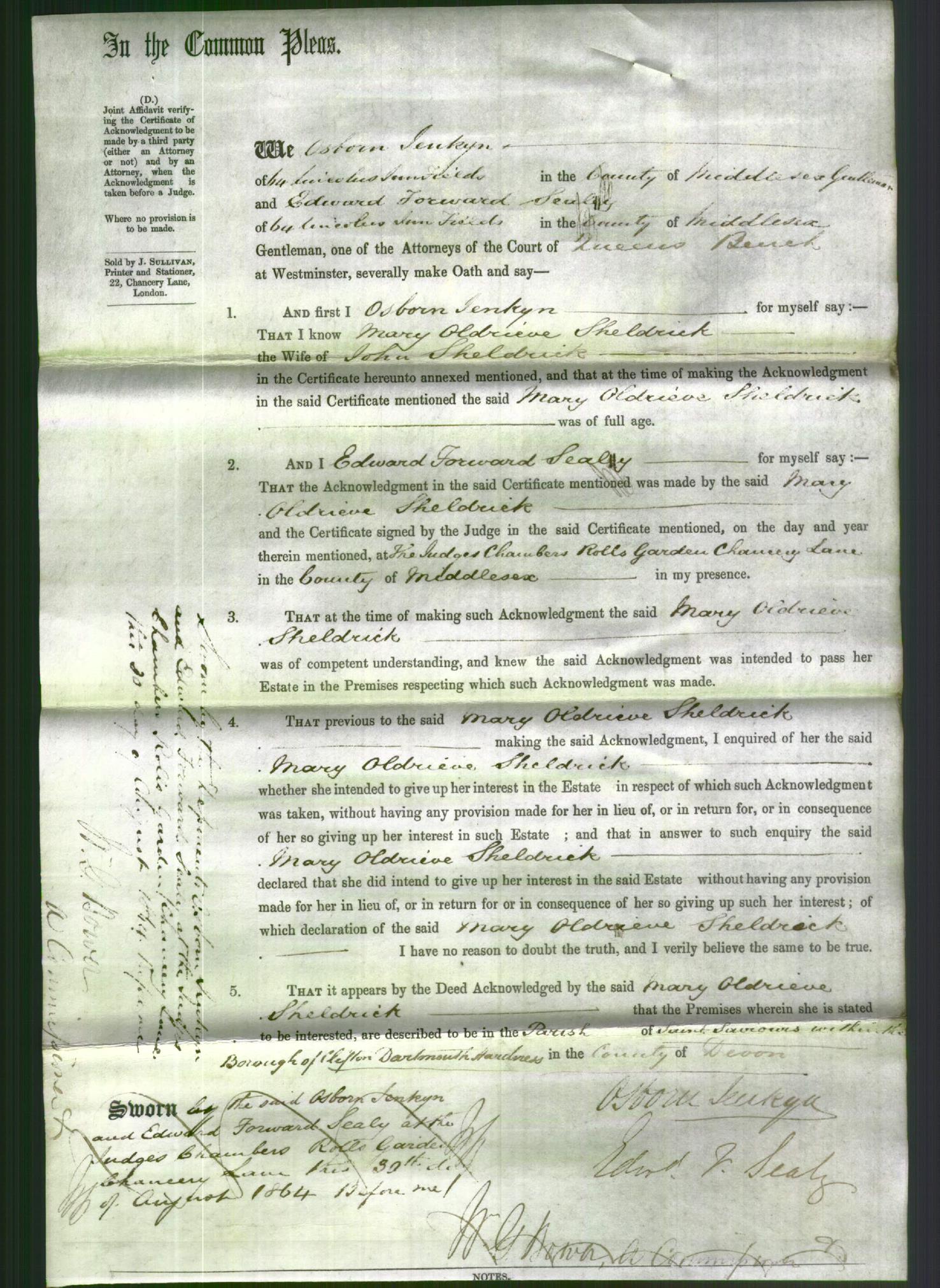 Witnessed by Honorable Sir William Shee and Osborn Jenkyn