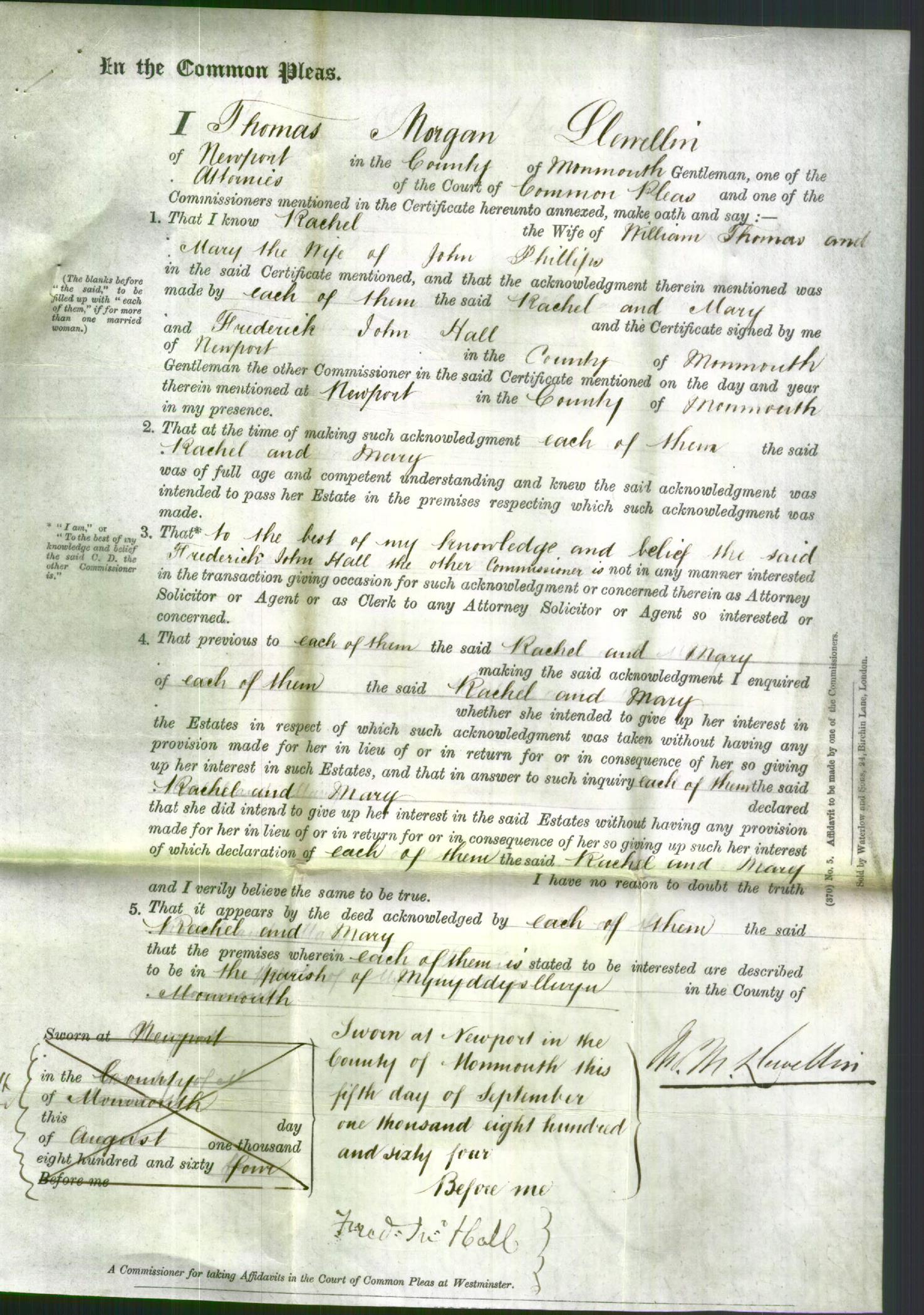 Witnessed by Thomas Morgan Llewillin and Frederick John Hall