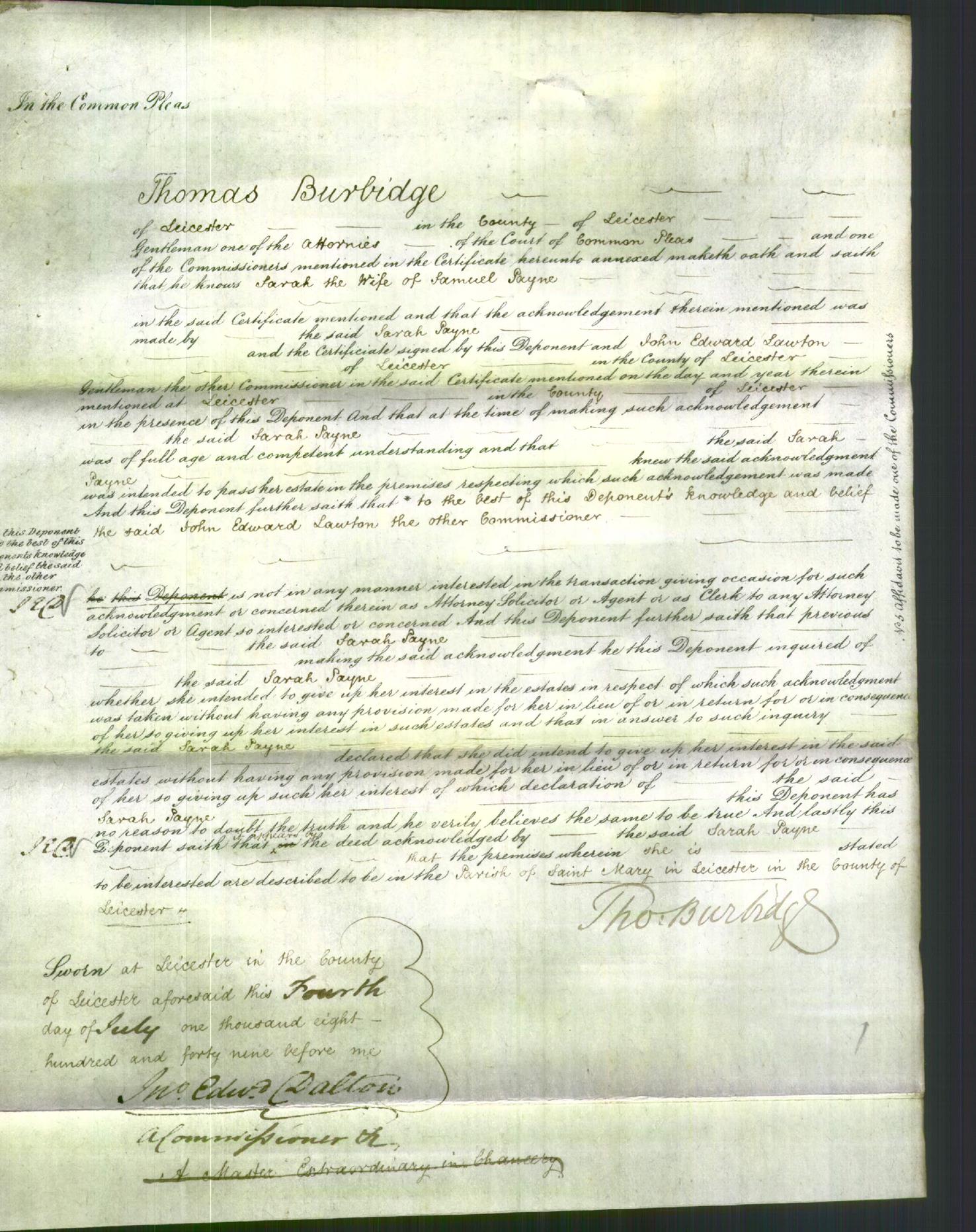 Witnessed by Thomas Burbridge and John Edward Lawton