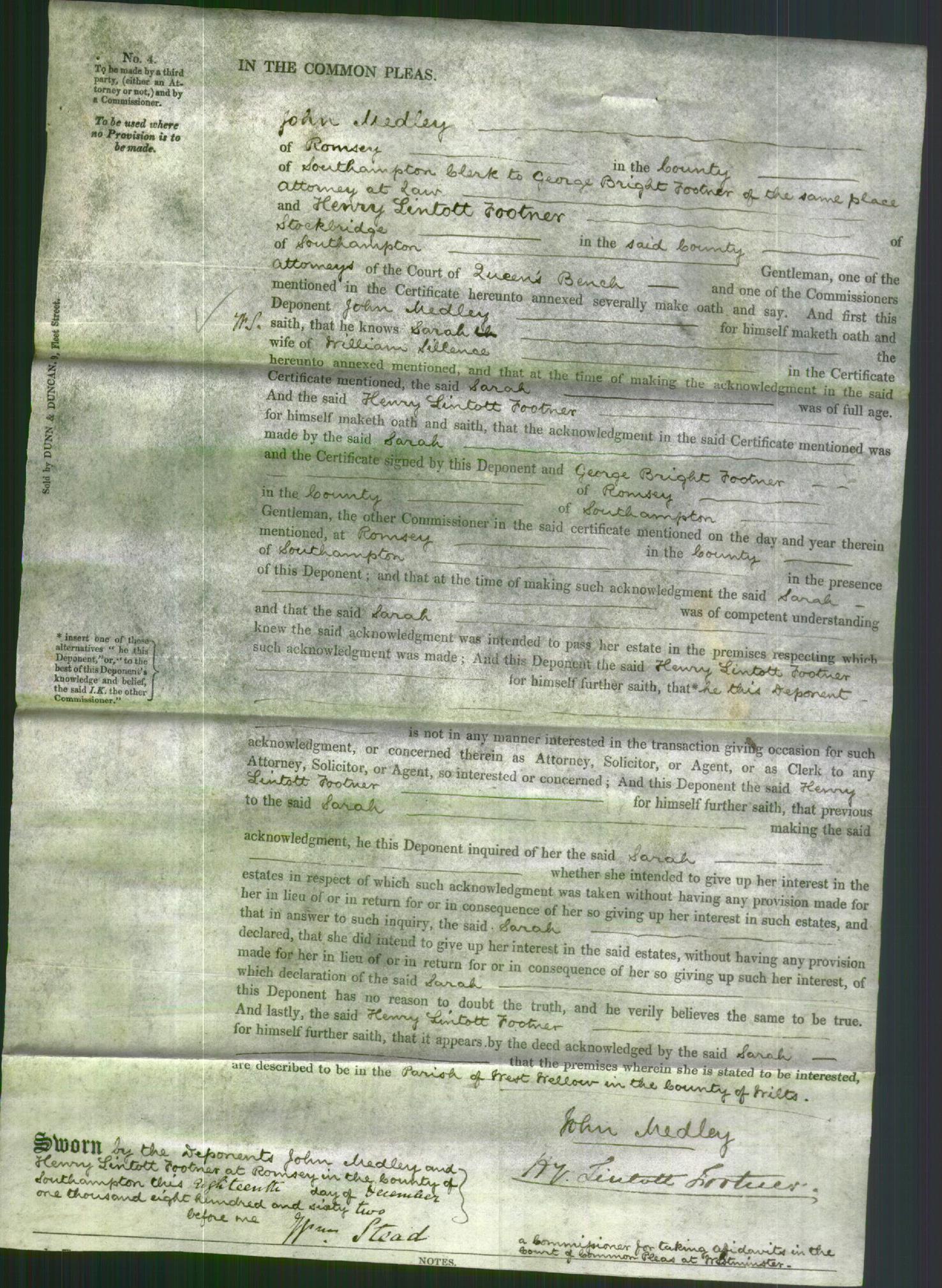 Witnessed by John Medley, George Bright Footner and Henry Lintott Footner