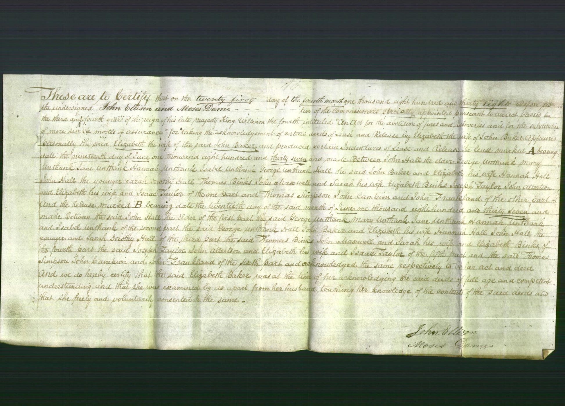 Witnessed by John Ellison and Moses Dame