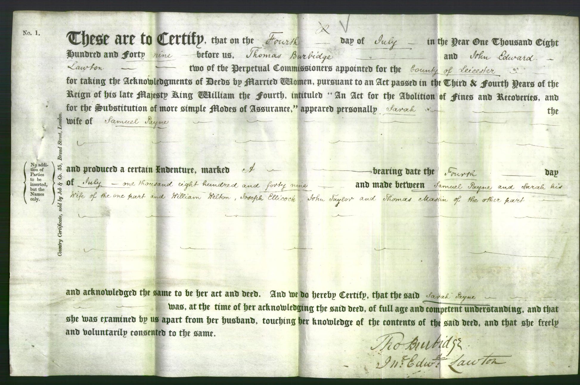 Certificate of acknowledgement of deed by married women - Sarah Payne wife of Samuel Payne