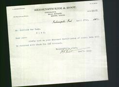 Letterhead - Seidensticker & Root, Indianapolis, Ind. 04/27/1903. Letter addressed to Mr. Cortland Van Camp, signed by W.R. Root, Asst. Secy.