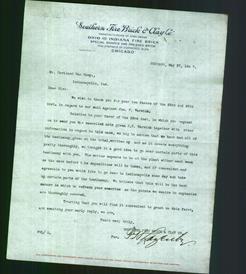 Letterhead - Southern Fire Brick & Clay Co. Chicago. 05/27/1907. Letter addressed to Mr. Cortland Van Camp, Indianapolis, Ind.