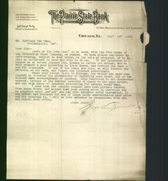 Letterhead - The Prairie State Bank, Chicago, IL. 12/19/1902. Letter addressed to Mr. Cortland Van Camp, Indianapolis, Ind. signed by George Van Zandt.